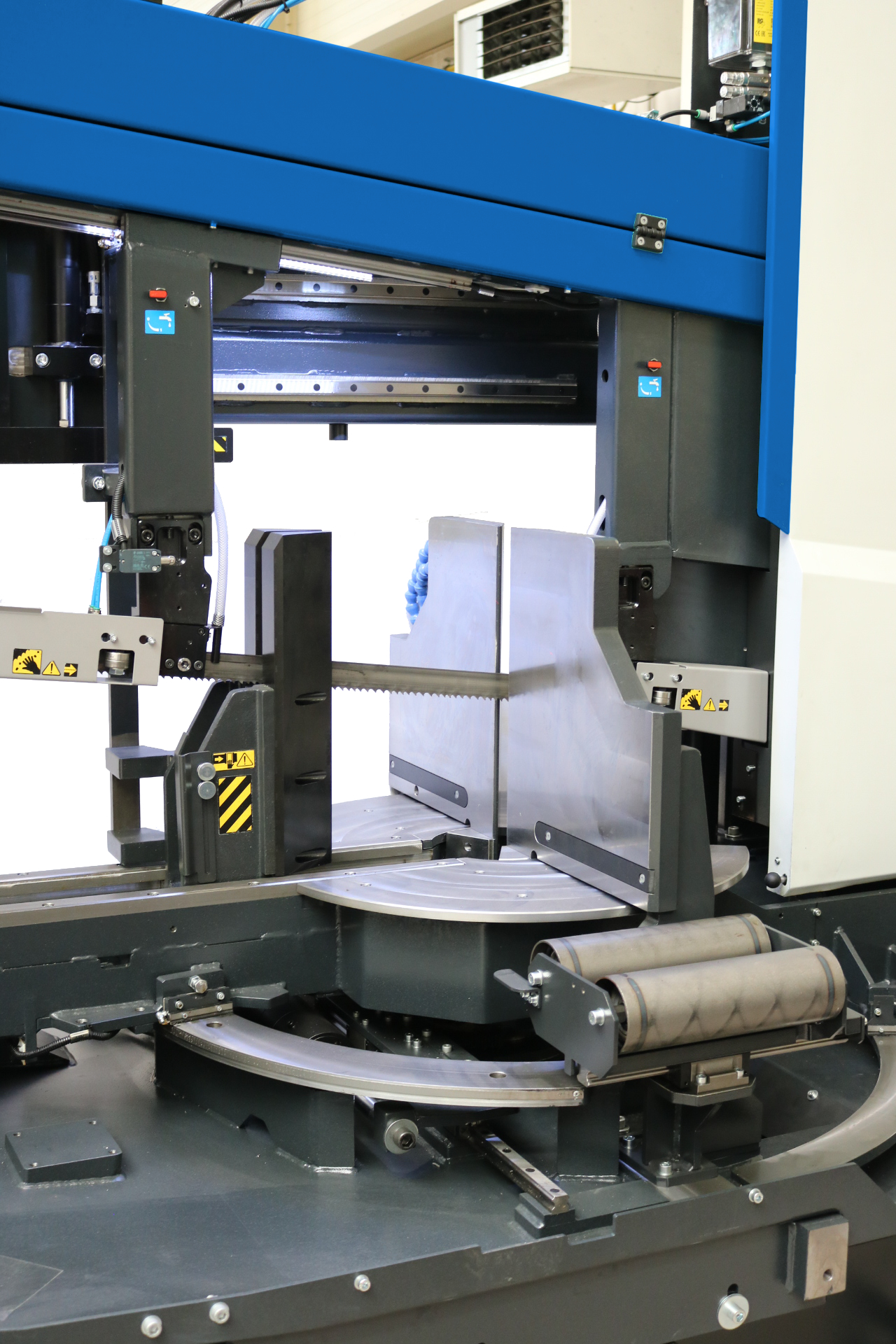 - Hidraulično stezanje obrtnog stola omogućava precizno sečenje pod uglom